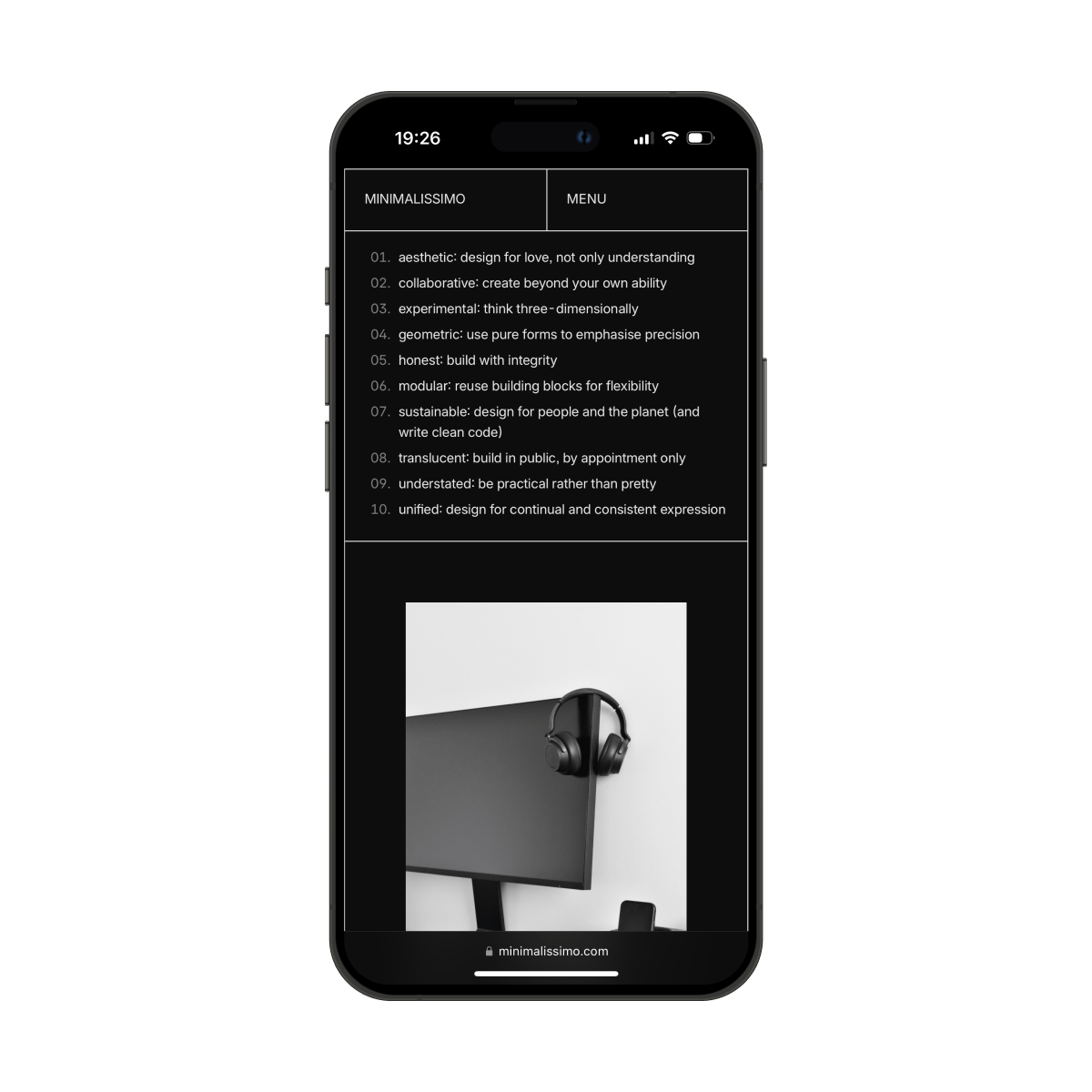 Minimalissimo has also been a creative studio focused on web and product design, applying a distinctively minimal visual language to communicate value and honesty.