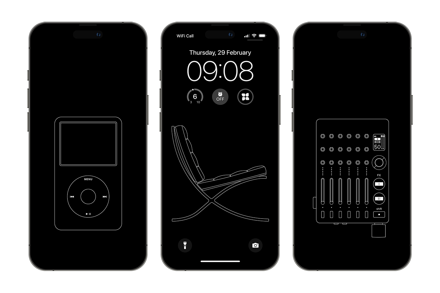 The pack contains 9 technical drawings of objects that represent our love of minimal design and music. What makes this wallpaper pack extra special is that it comes with a PSD file where in Adobe Photoshop you can customise the size, position, stroke, and background of each design, making the pack highly versatile and personalised to you. But even if you don't have the software to edit them, the standard black and white versions look great. Or you can try using Photopea (a free browser-based simulation of Photoshop).